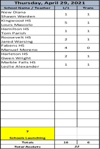 After the completion of this weekend’s launches the Texas Rocket Trail will move to Smith Point in Anahuac, down in the Houston area for the final leg of the season before the spring launches end for another year. Those launches begin Friday, May 8.