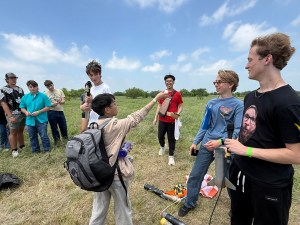 We had three Brazoswood seniors that came to support our media department with interviews and launch fimling. Ava Andrews, Michaela Gutrmuth, and Gosha Krasovskiy led students through stories about their rockets, hopes for their future, thoughts about their launch once it was done. They were very creative in their questions as well as entertaining during down time. Ava plans to return tomorrow with a host of new students, and has already been charged with keeping them in line and showing them how the system works and what to do to keep student rocket teams engaged.