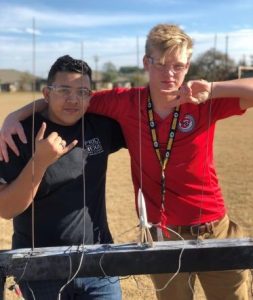 Jabin Gipson and Rudy Avila model their Generation 3 rocket on launch day.